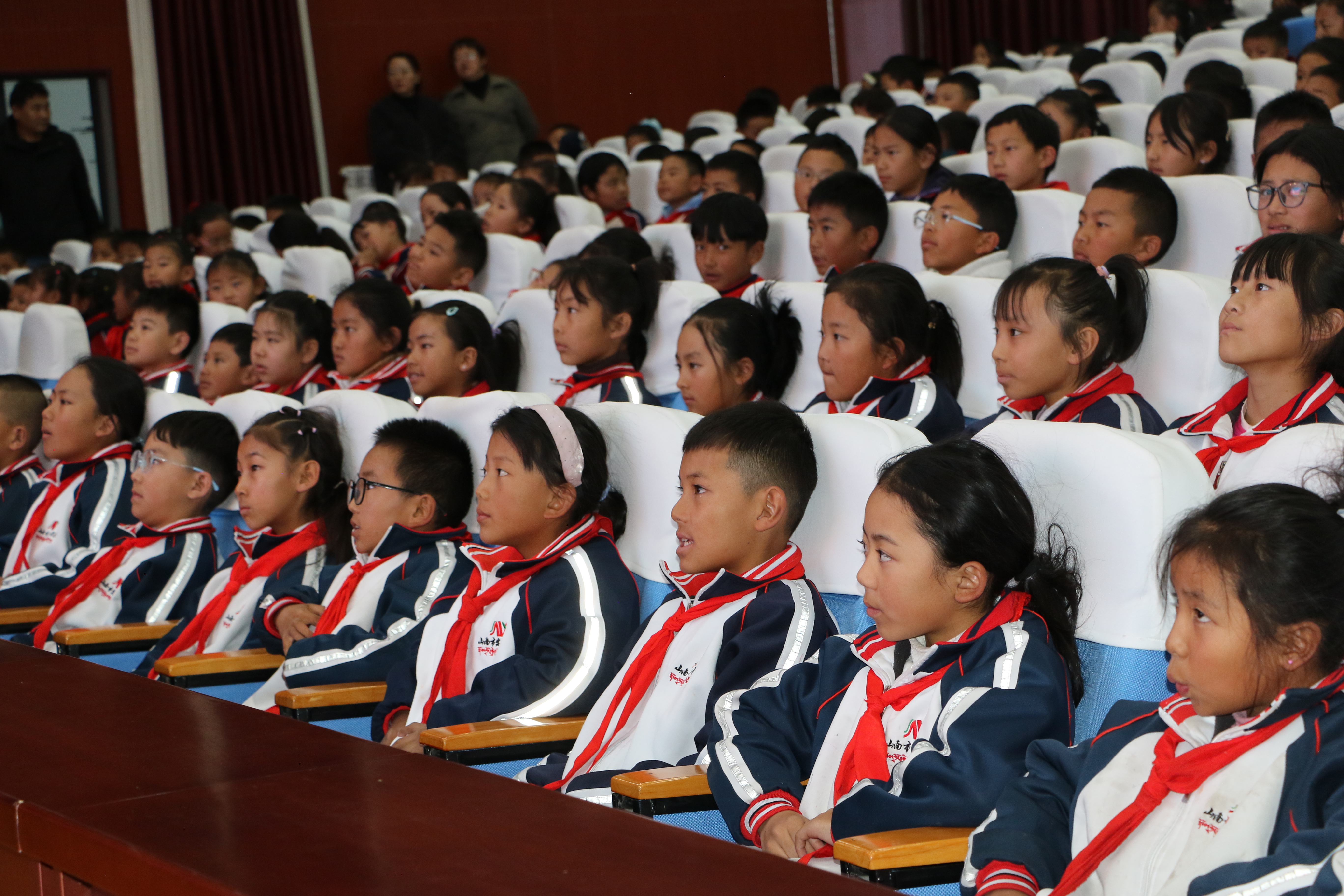 巡讲会上,同学们精神抖擞、秩序井然。宣讲老师们分别以《作业本里的钢铁穿山甲》《荔枝闪送记》《从“倒”1到“第1”跑出加速度》等为主题,以真实案例为依托,通过鲜活故事展现科技创新的力量与奋斗精神的光芒,生动诠释中国自主创新的智慧与速度,让少先队员们直观感受科技赋能发展的强劲动力。同时,宣讲内容结合西藏经济增速的跨越式发展历程,讲述新西藏在党的领导下“短短几十年、跨越上千年”的巨变,让少先队员们深切体会到,只有坚持中国共产党的领导,才能拥有今天的幸福生活,才能跑出属于自己的成长“加速度”。老师们用童言童语将“十五五”宏伟战略转化为少年儿童易于理解的内容,让党的创新理论如春风化雨般浸润孩子们的心田。