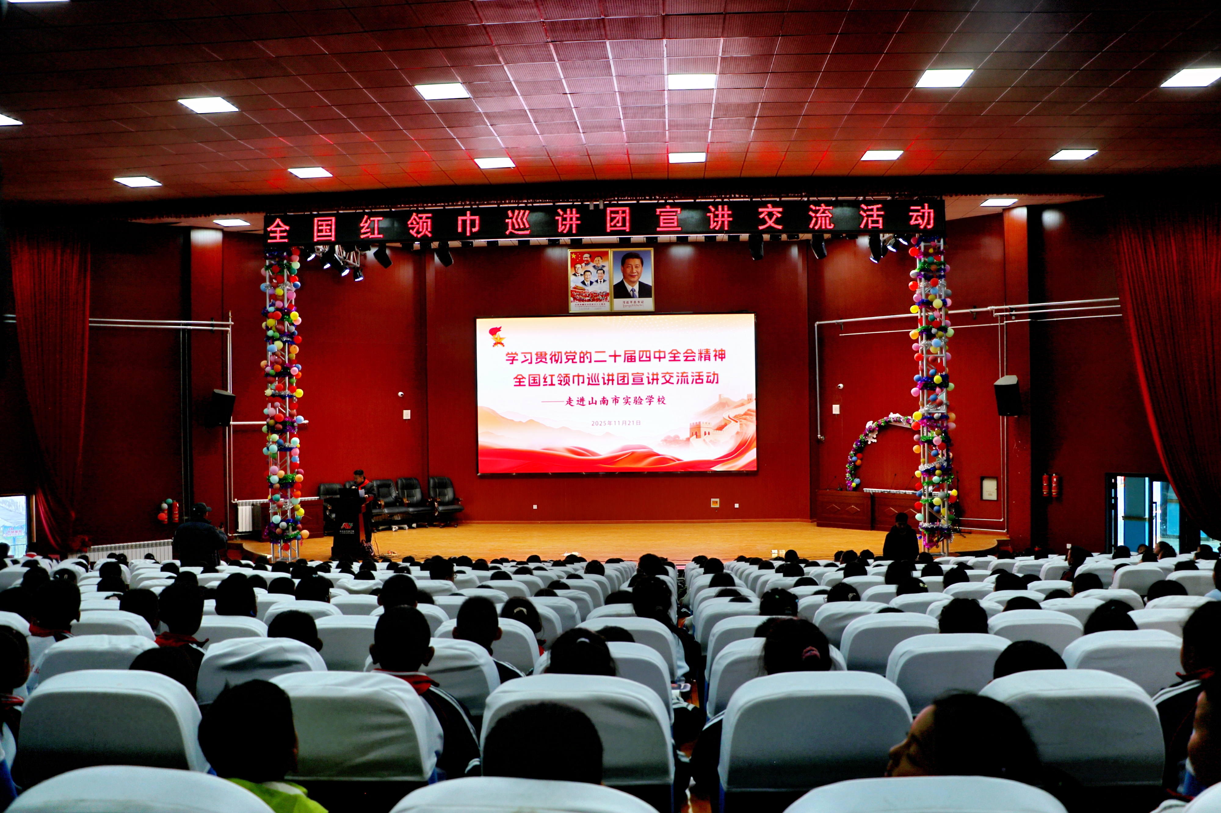 11月21日,学习贯彻党的二十届四中全会精神全国红领巾巡讲团走进市实验学校,以示范宣讲推动党的二十届四中全会精神入脑入心,让少先队员在交流中既懂道理又有“童味”。