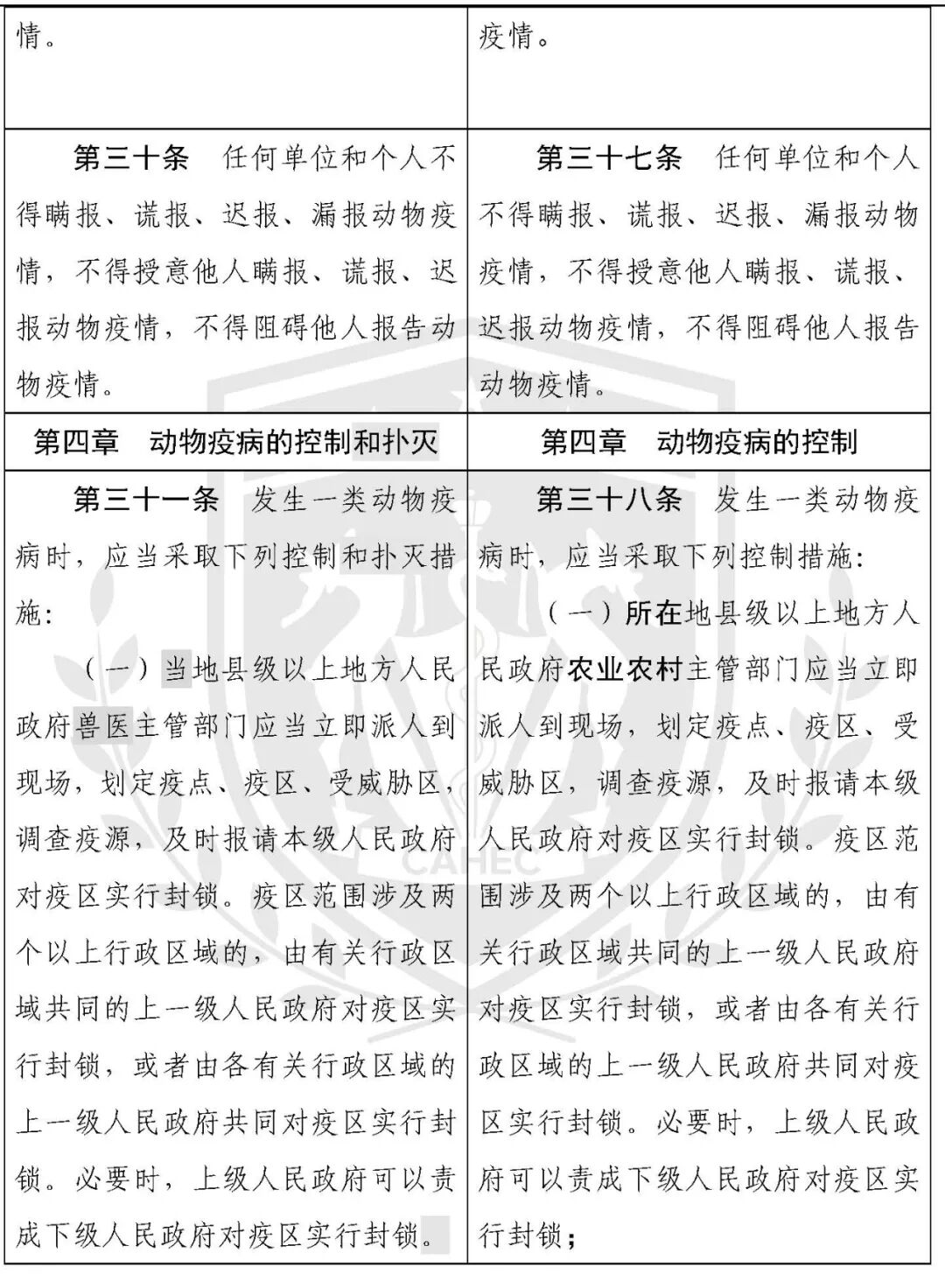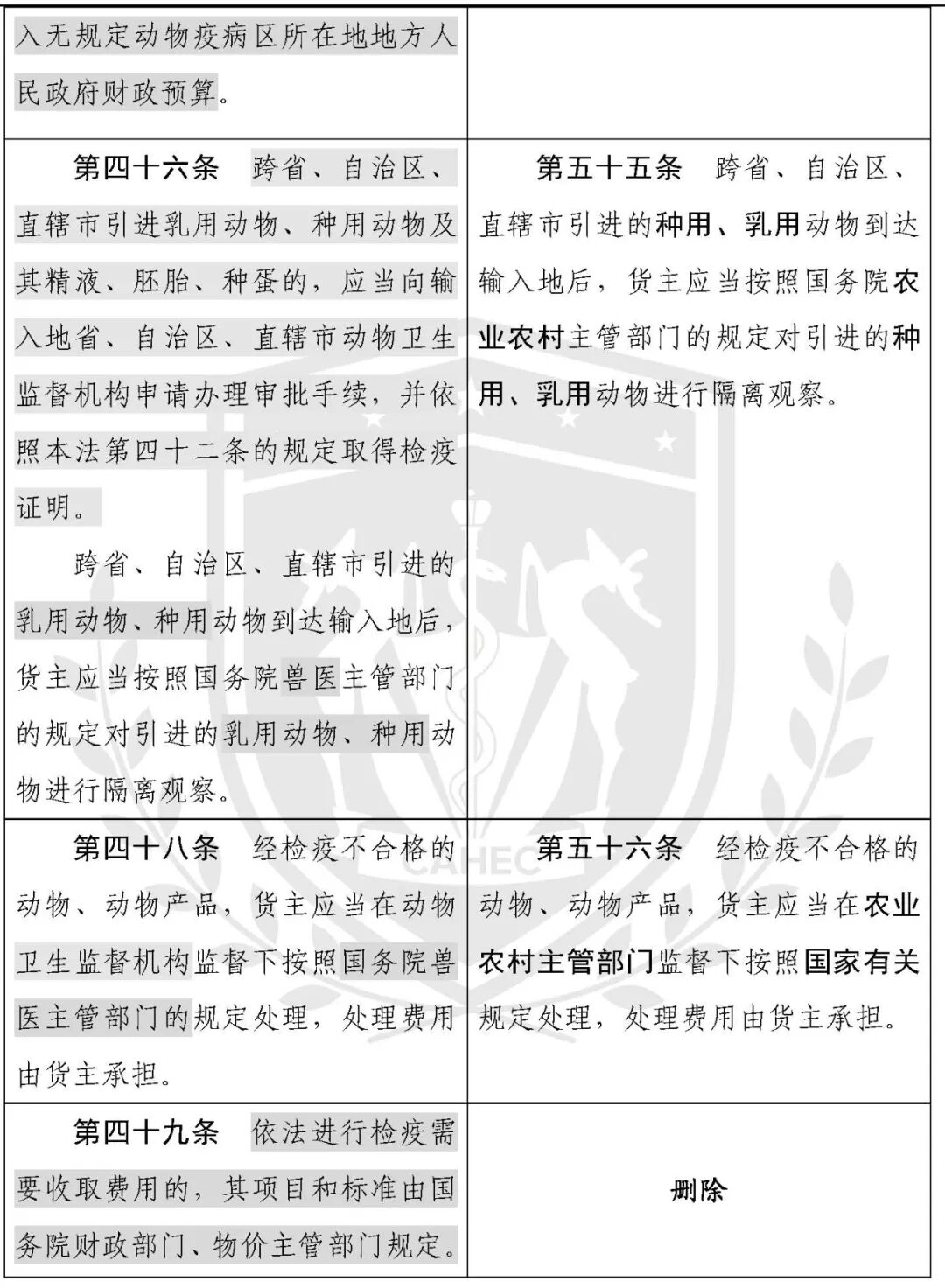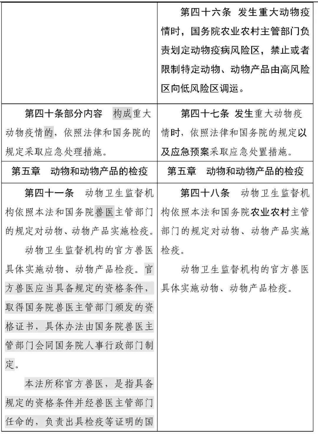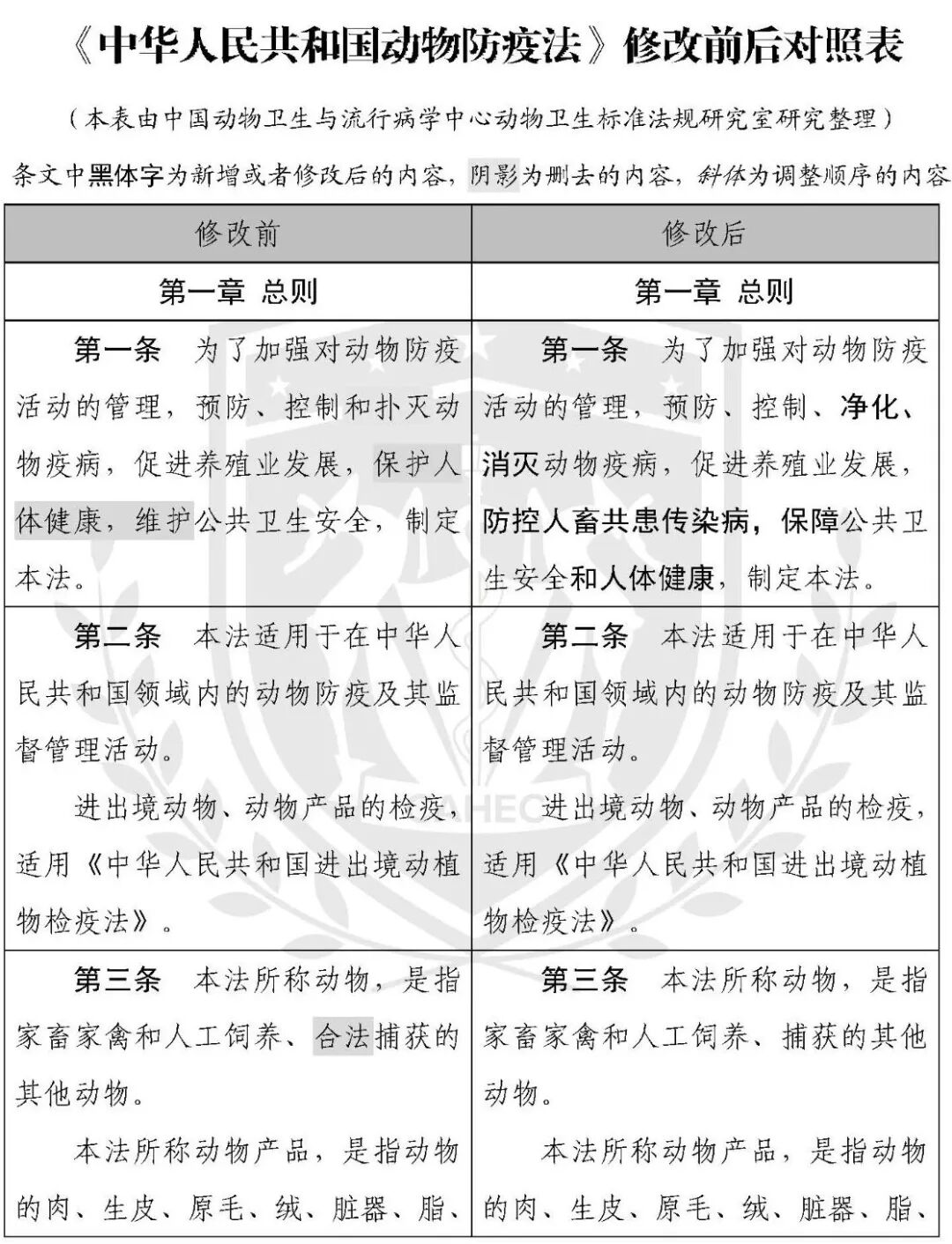 动物防疫法修改对照表
