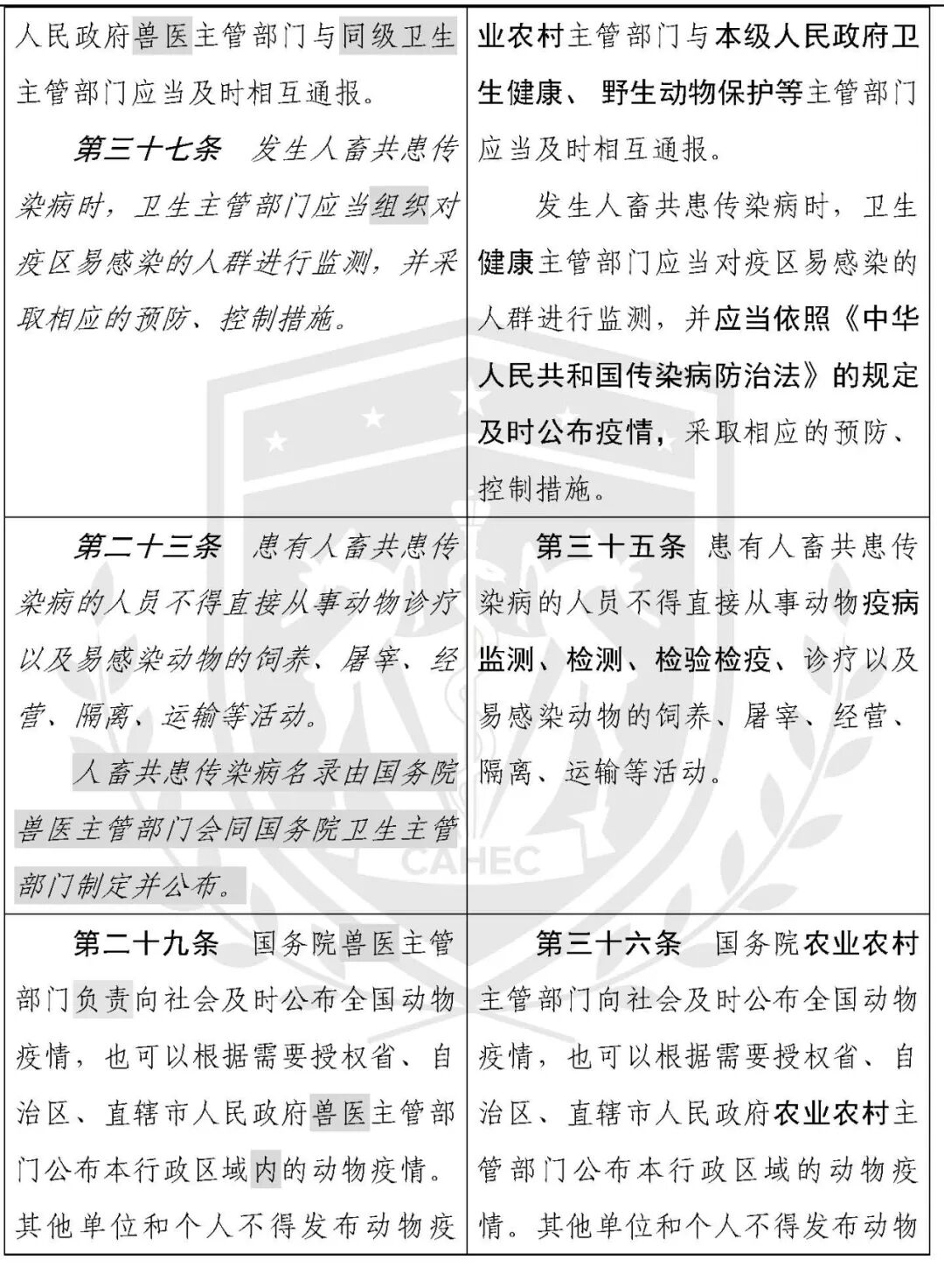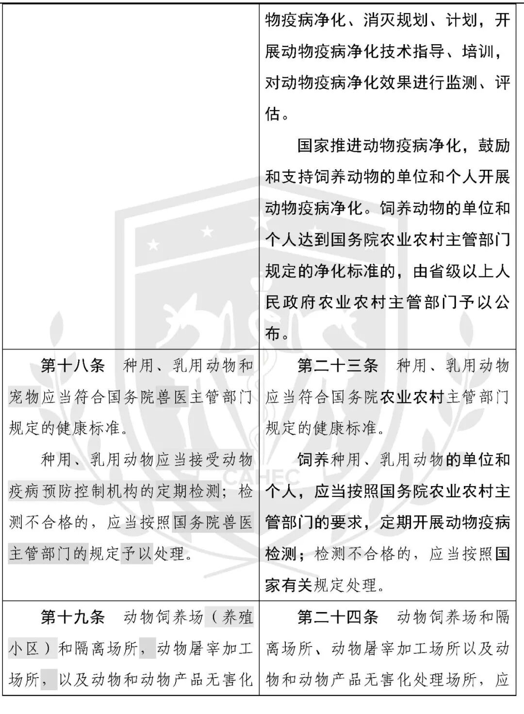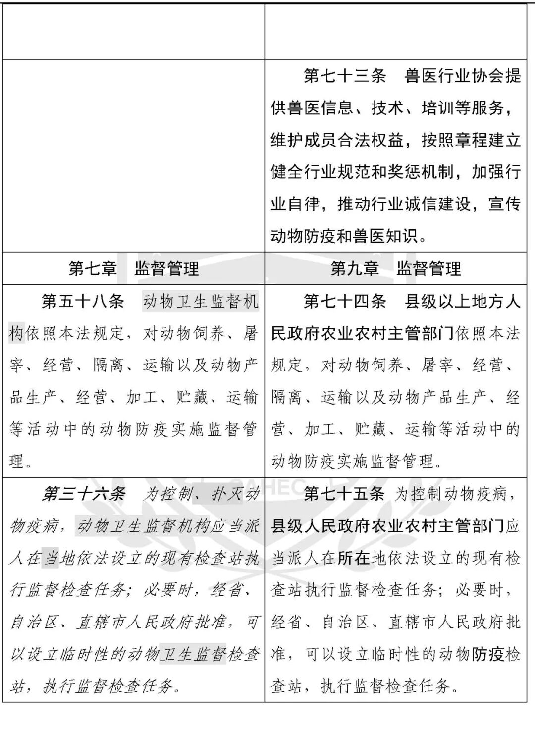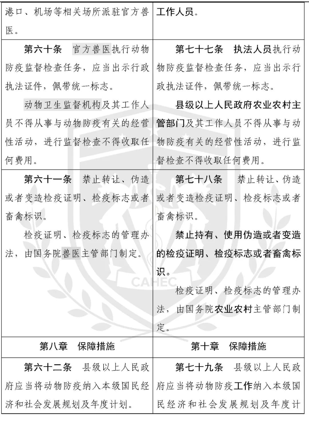 动物防疫法修改对照表