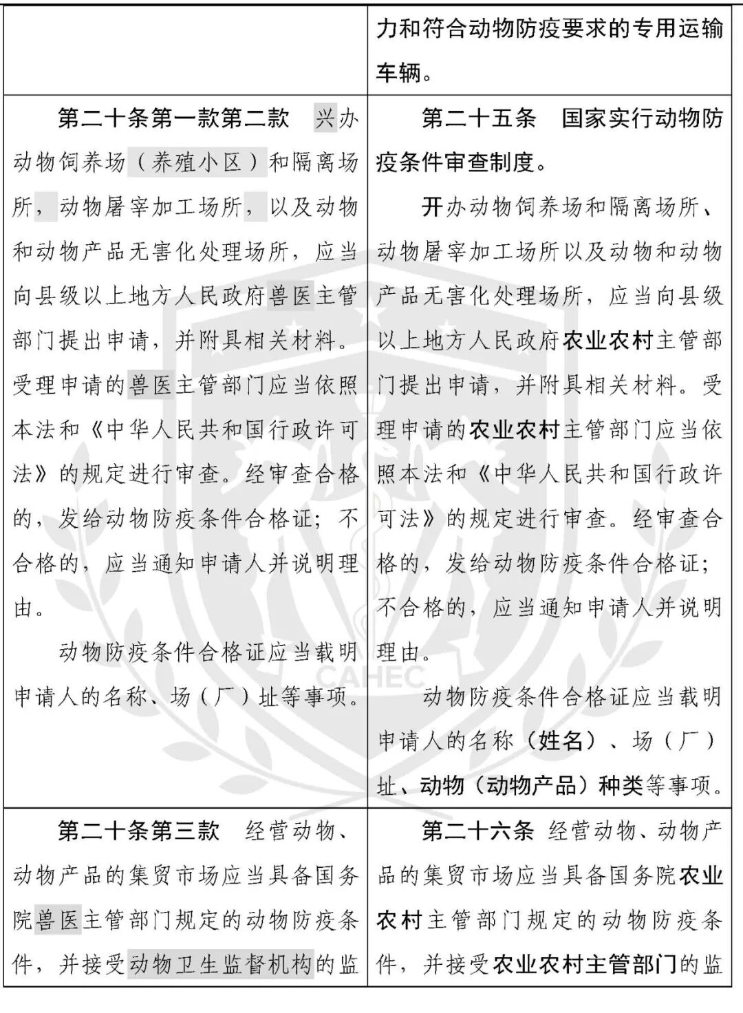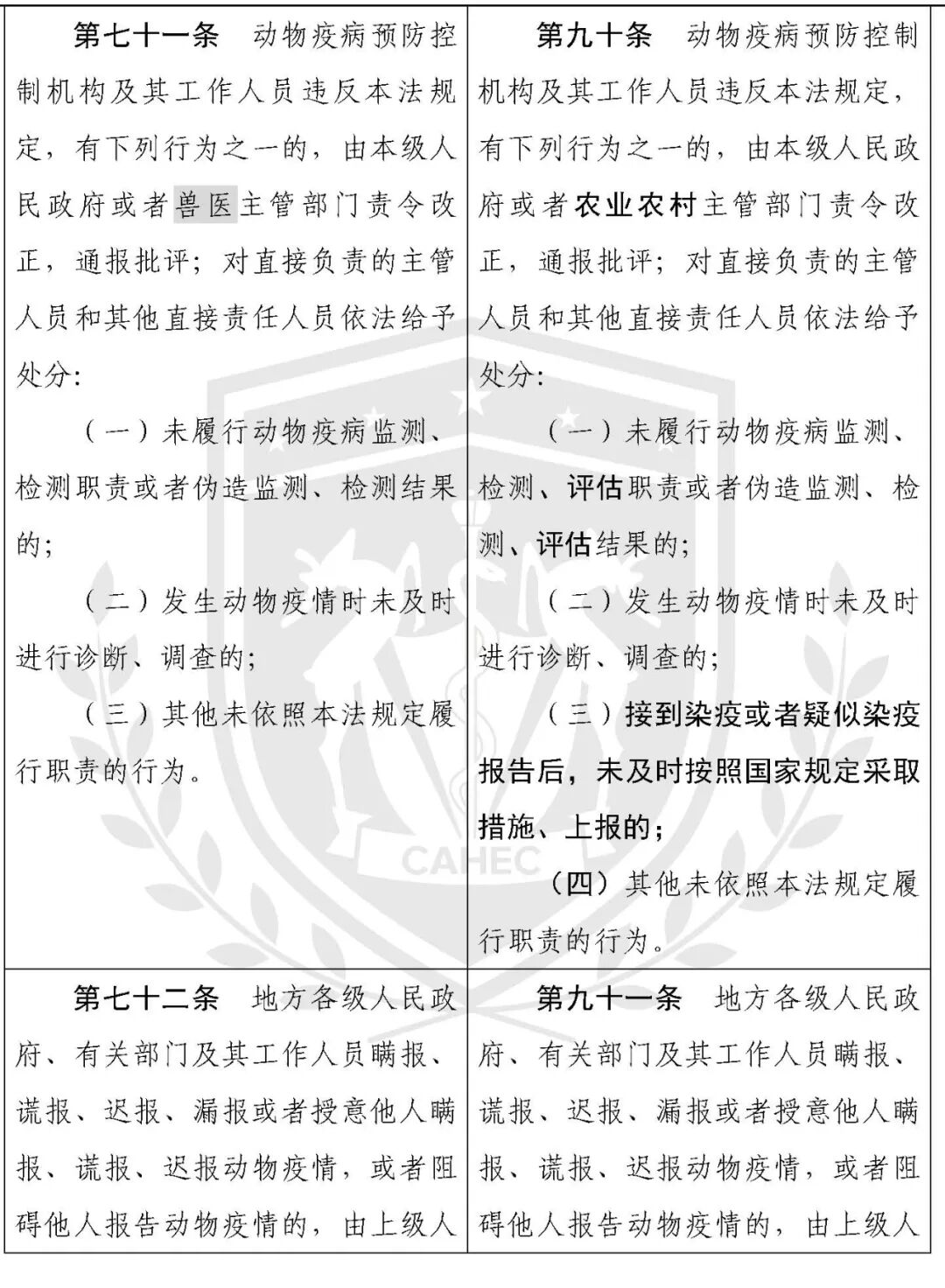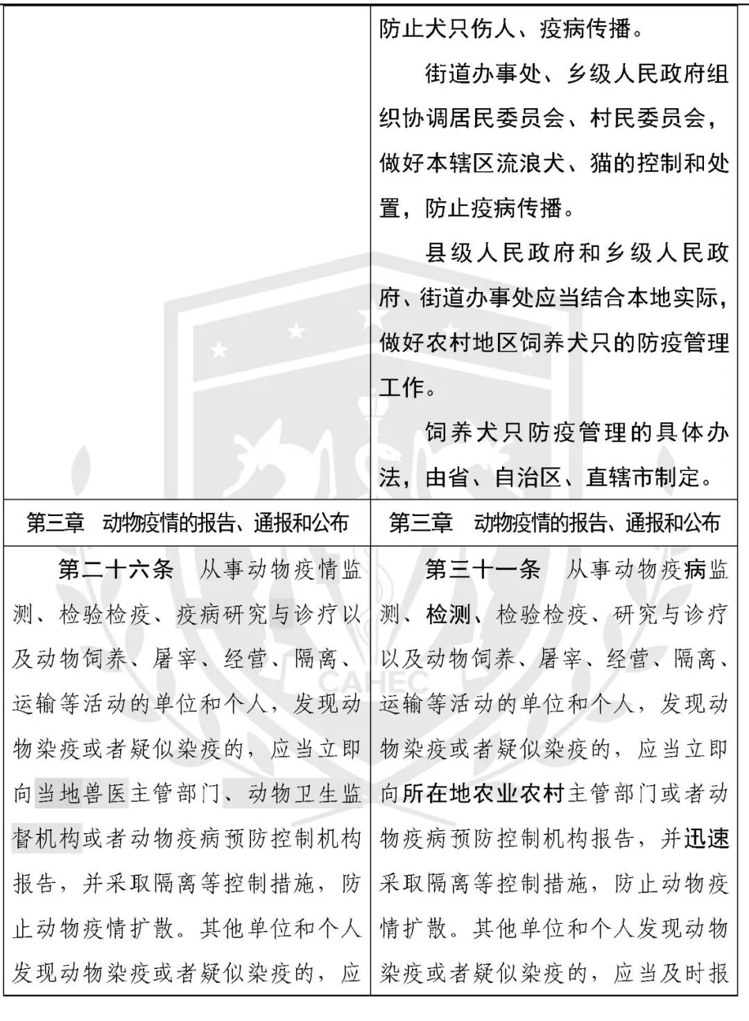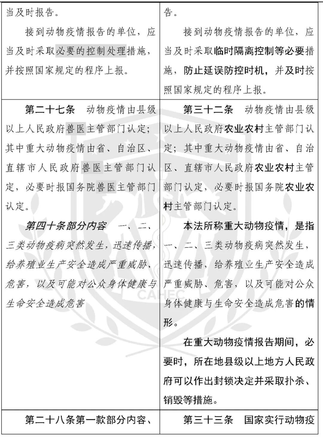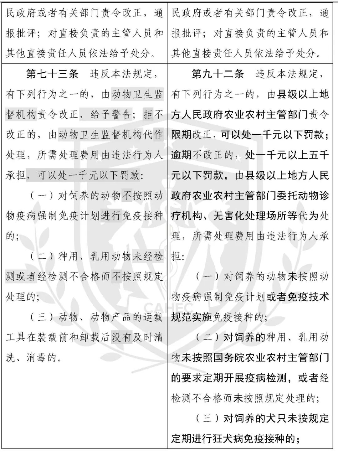动物防疫法修改对照表
