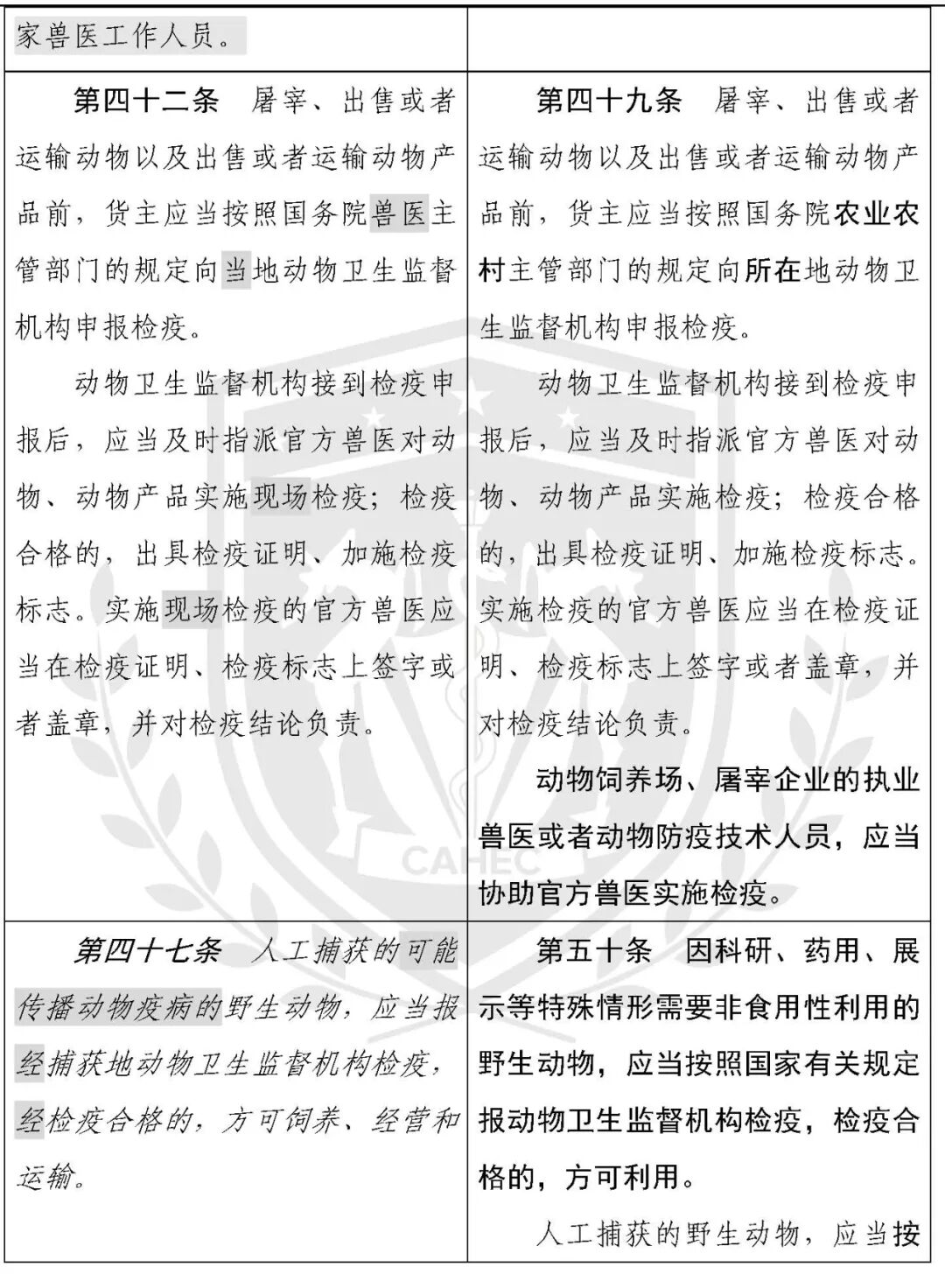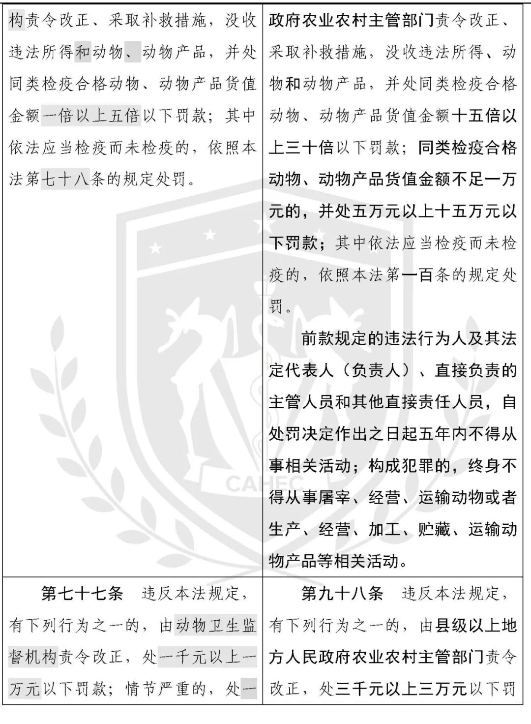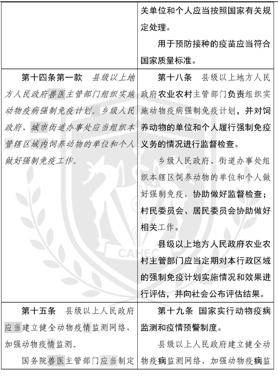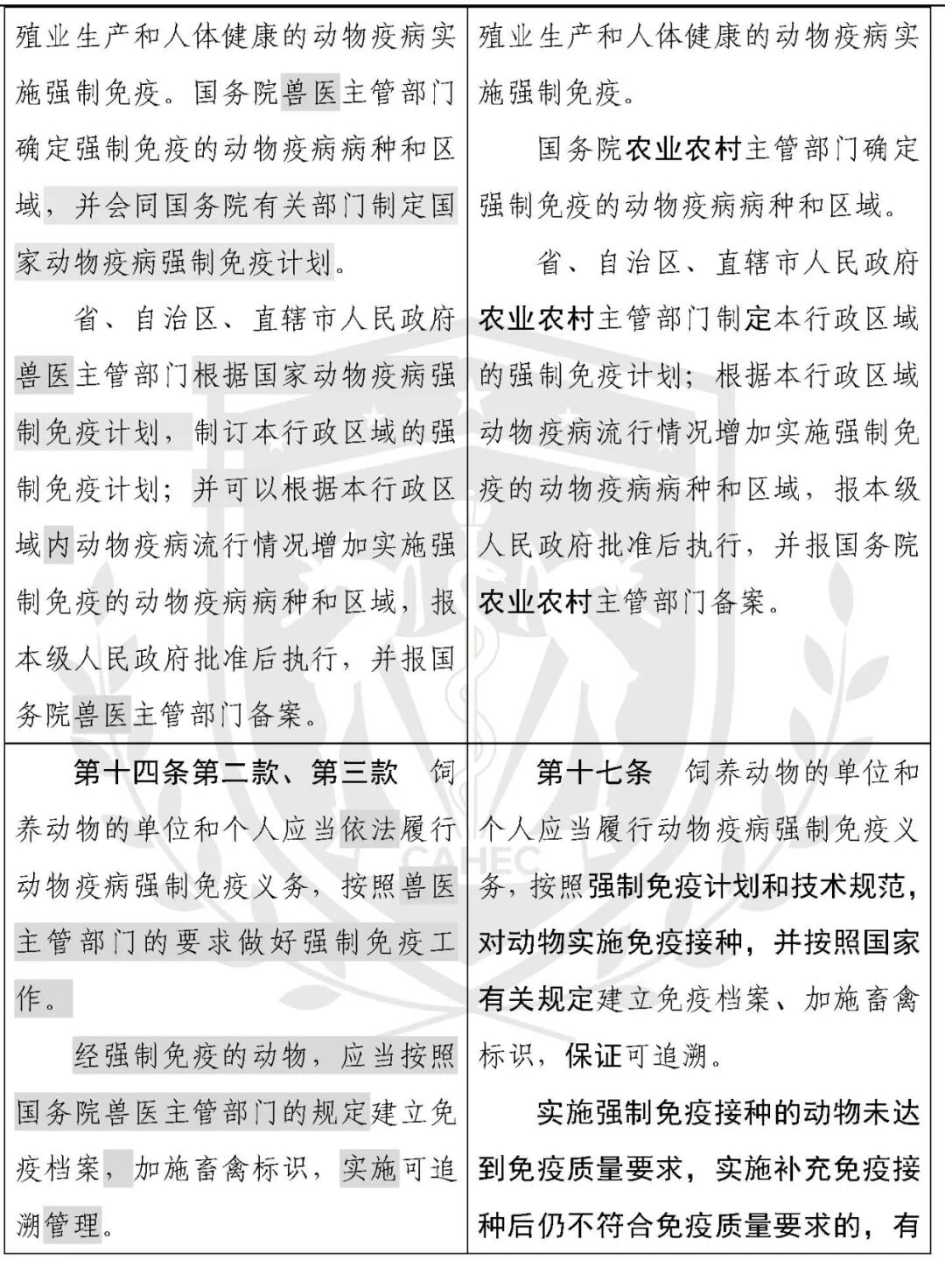 动物防疫法修改对照表