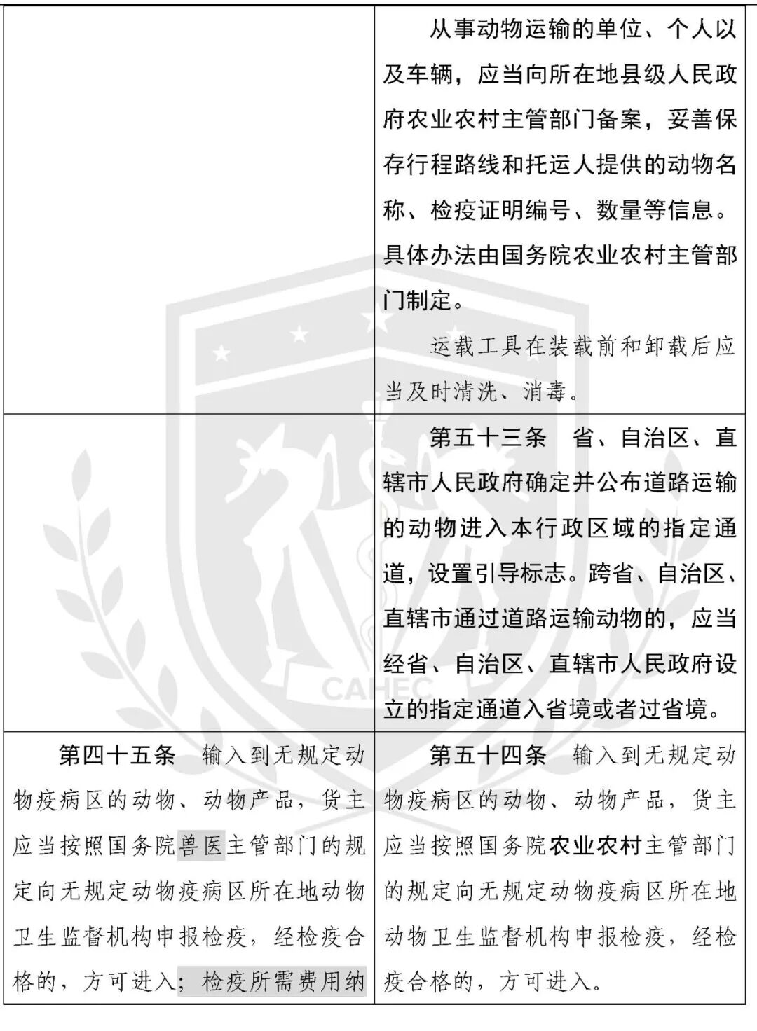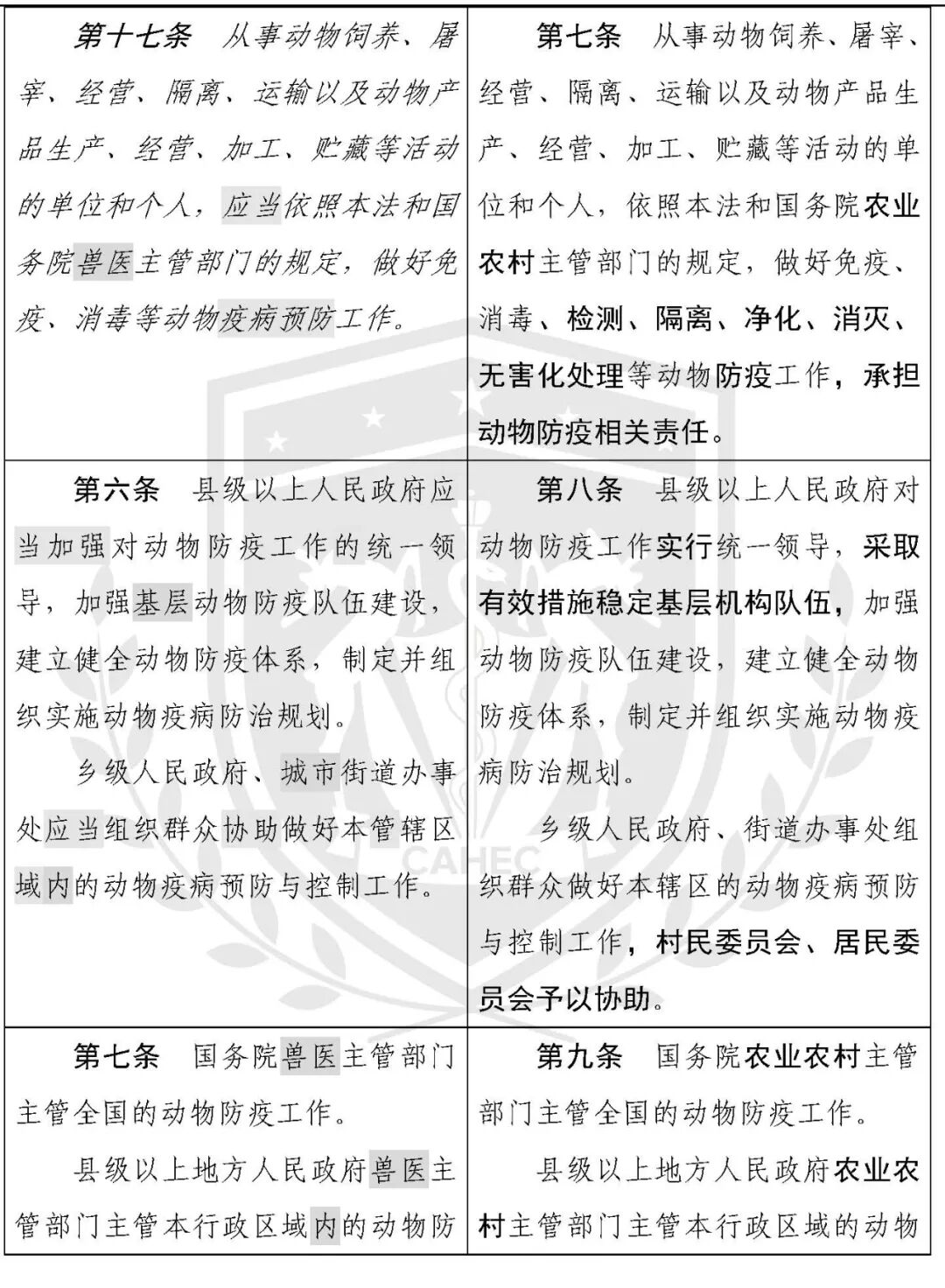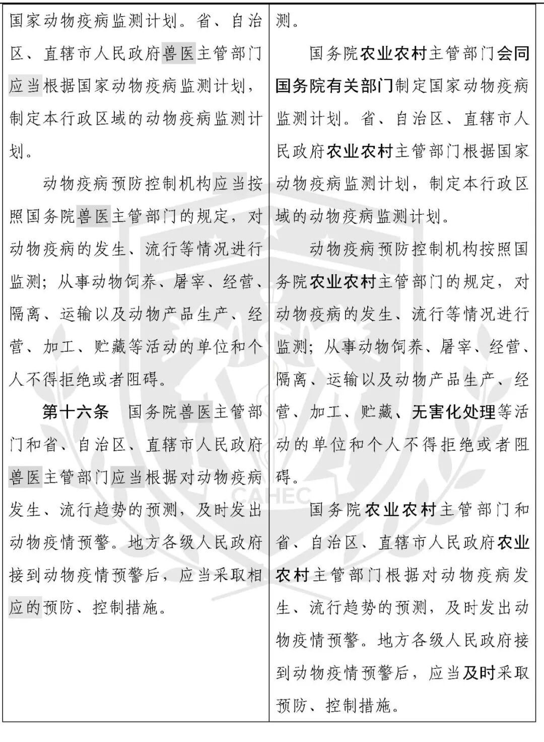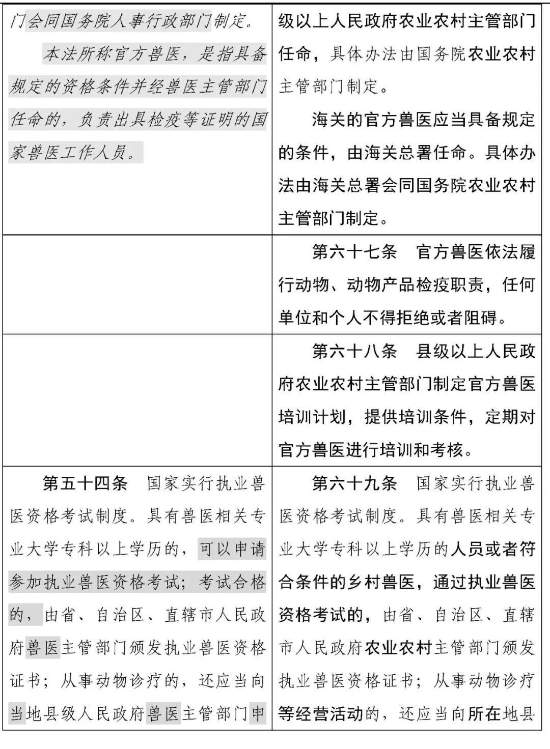动物防疫法修改对照表